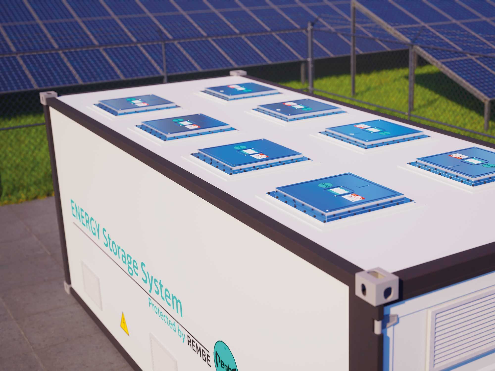 BESS.IKLI-EGV is installed at the BESS roof and vents deflagrations upward to a safe location. Insulation is housed inside a metal cassette on top of the deflagration vent panel. The standard burst pressure is 0.1 bar at 22 °C (71.6°F), but can be modified to suit any BESS design, as low as 0.025 bar.