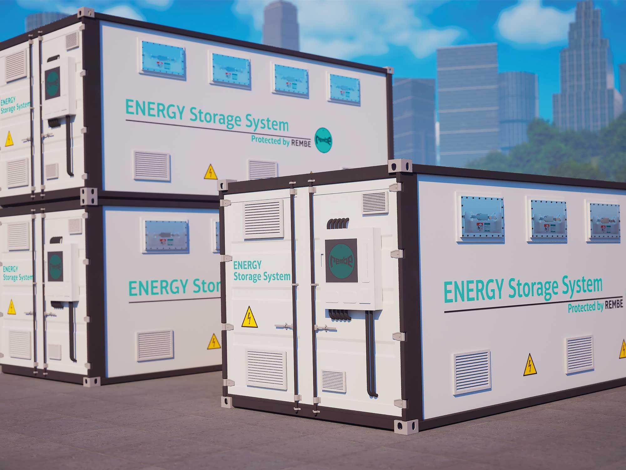 Deflagrations must always be vented to a safe location. Conventional deflagration vents can therefore only be installed on the roof of a BESS, venting the deflagration upwards. The revolutionary BESS.TGV by contrast can be installed on a BESS side wall, as it deflects the deflagration upwards by limiting the opening angle of the vent panel.