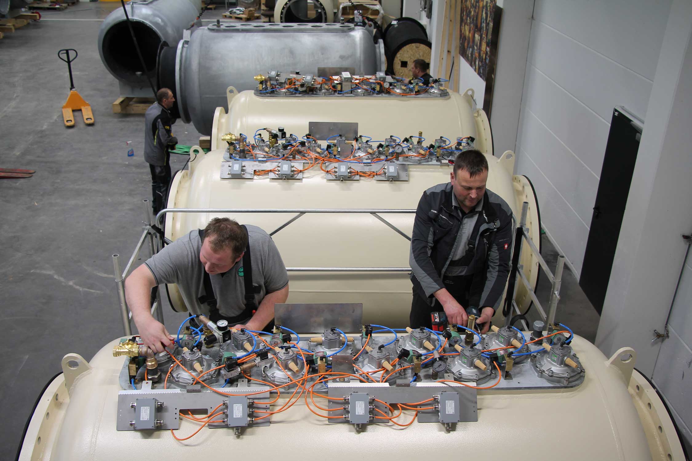 In the event of an explosion, the controller receives a trigger signal (e.g. from the signaling unit of the Q-Rohr® or an explosion vent, from a pressure switch or spark detector) and activates the connected quench valves. These close within a few milliseconds and thus prevent the explosion from spreading to adjacent plant components. After being triggered, the quench valves can be put back in operation once again at the touch of a button.